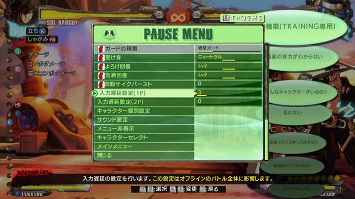 「GUILTY GEAR Xrd REV 2」ではトレーニングメニューから「メニュー非表示」を選択するとキャラをじっくりと見られる