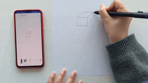 「Aa-PEN」は専用紙ノート「紙タブ」と手書きタブレット「板タブ」専用ペンがセットになっている。スマホに専用アプリを入れれば、ノートやタブレットに書いたメモを瞬時にデジタル化しデータとして保存・共有できる。さらには書いた順序まで記憶し再生できる。