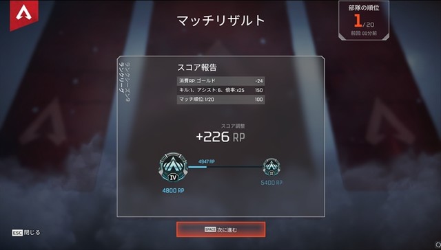 ランクマは上位に生き残るだけでもRPが貰えるんだけど、相手をキルするとキルポイントが、キルされた相手に直前まで弾やアビリティなどを当ててるとサポートポイントがもらえる。これらを蓄積していけばRPが跳ね上がるわけだ。