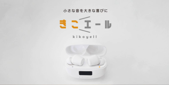 「きこエール」は装着するだけで、集音機として使えるワイヤレスイヤホン。スマートフォンやタブレットとペアリングすると音楽も聞ける。動画視聴や電話中の使用も可能だ。
