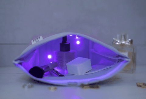 そんな時に活躍するのが「OCONNOR UVライト除菌ポーチ」。コンパクトなうえ、折りたたんで収納できて荷物も少なくなるし、家の中でも外でも約90秒で簡単に除菌できる。