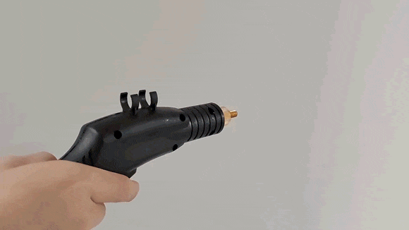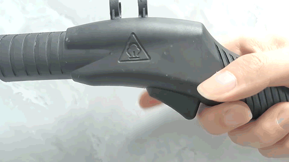 グリップ部分のトリガーを引けば、本体側面にある緑色のランプが点灯し、高圧の水蒸気が噴射される。