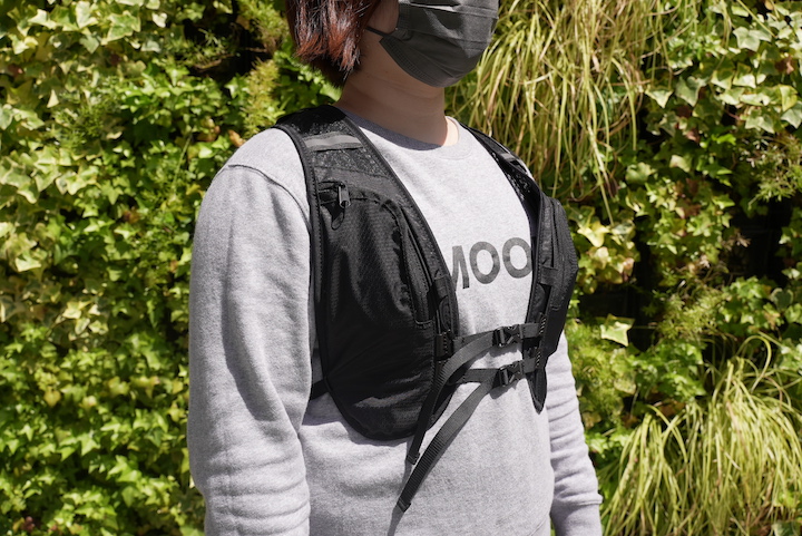 トレイルランニング用のリュックを参考にして、重さを感じにくく、動きやすい形状に設計されています。