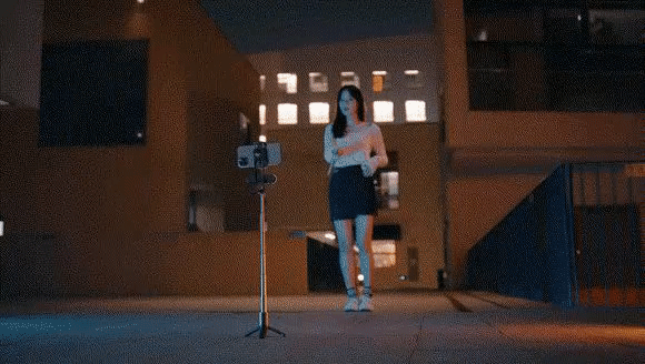 また、アーム部分が伸縮できて最長695mmの自撮り棒に早変わりする。グリップが三脚にもなっていて自立ができるので、ひとりでの撮影でも便利に使えそうだ。