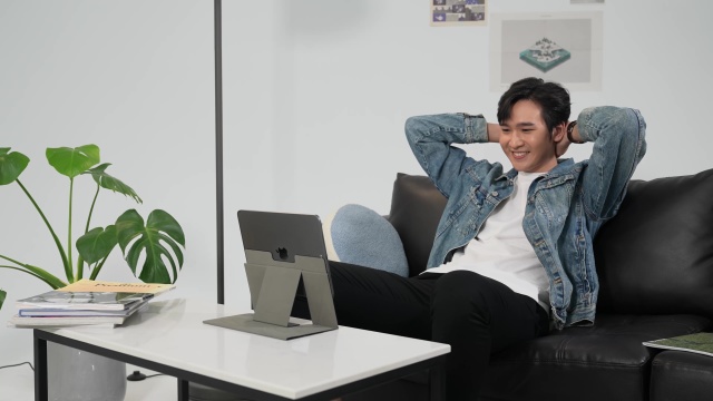 タブレットの用途にピッタリの形を13種類のポジションから選べる。動画視聴のために、40度・60度・70度、3種類の角度と高さ6cmのポジションが選べる。オンライン授業やミーティング時に、カメラの角度が選べることになるので、意図せず「進撃の巨人」のようなアングルにならずにすむ。