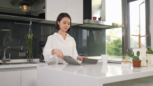 また、マグネットが内蔵されているのでホワイトボードや冷蔵庫などに、簡単に貼り付けられる。映画や音楽を楽しみながら調理したり、途中でメモをとったりもできる。