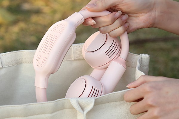 「IZELL-F32」は首裏にECT冷却チップが採用されており、首にかけるとひんやりと感じるという。前2か所にある送風口は向きが変えられて、風量は3段階で調整可能だ。手ぶらで、首元をひやしながら風を浴びられる。