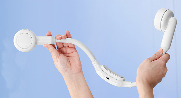 本体はシリコン素材で作られており、肌ざわりが良く、曲げ伸ばしができるほどやわらかい。角度を自由に調整でき、さらに人間工学に基づき首にフィットするよう設計されている。