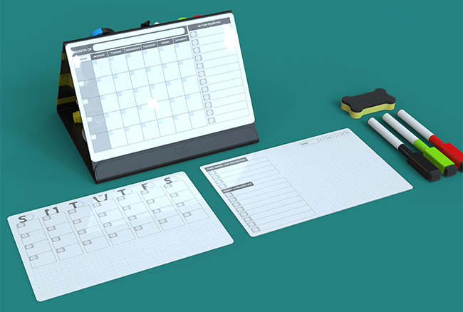「Front Fold」は、日・週・月の3種類のホワイトボードを搭載。それぞれに複数のタスクを優先順位を付けて見やすく書き込める。
