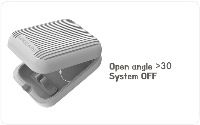 さらに、人体に影響がでないよう、カバーを30°以上の角度に開くとライトが停止する安全機能も施されている。
