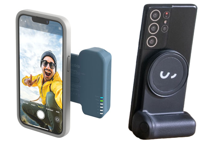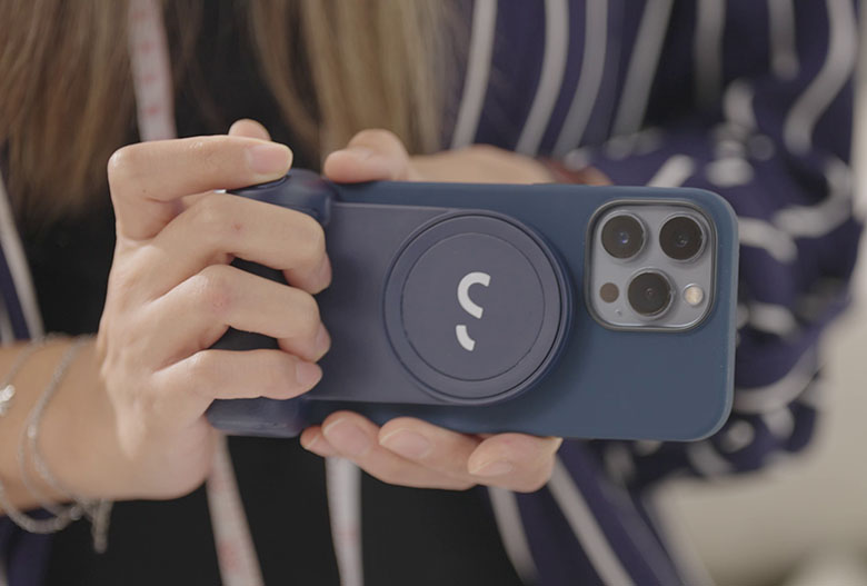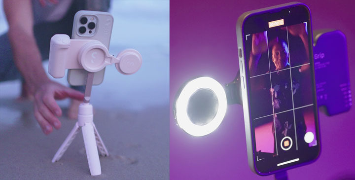 スマートフォンを使ったライブ配信もいまや当たり前の時代だが、撮影対象を変えたり、手持ちからスタンドに固定する際にもたつくのはできるだけ避けたいところ。「SnapGrip」はスマートフォンに取り付けられる、ミラーレスや一眼レフカメラのようなグリップ。