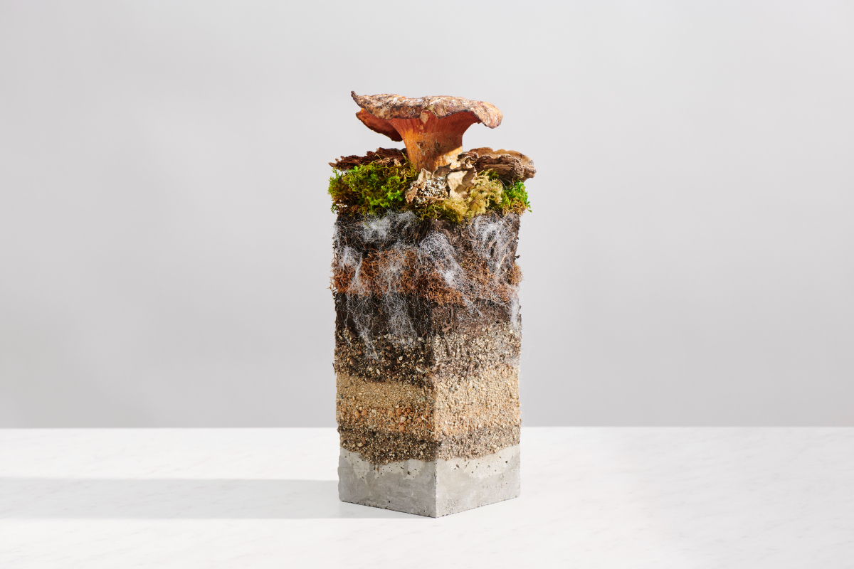 キノコがなぜカバンの素材になるのか不思議に思うかもしれないが、キノコの菌糸体(菌が構成する、根のような糸状の組織体)の微細な繊維が集まることで素材になるのだ。