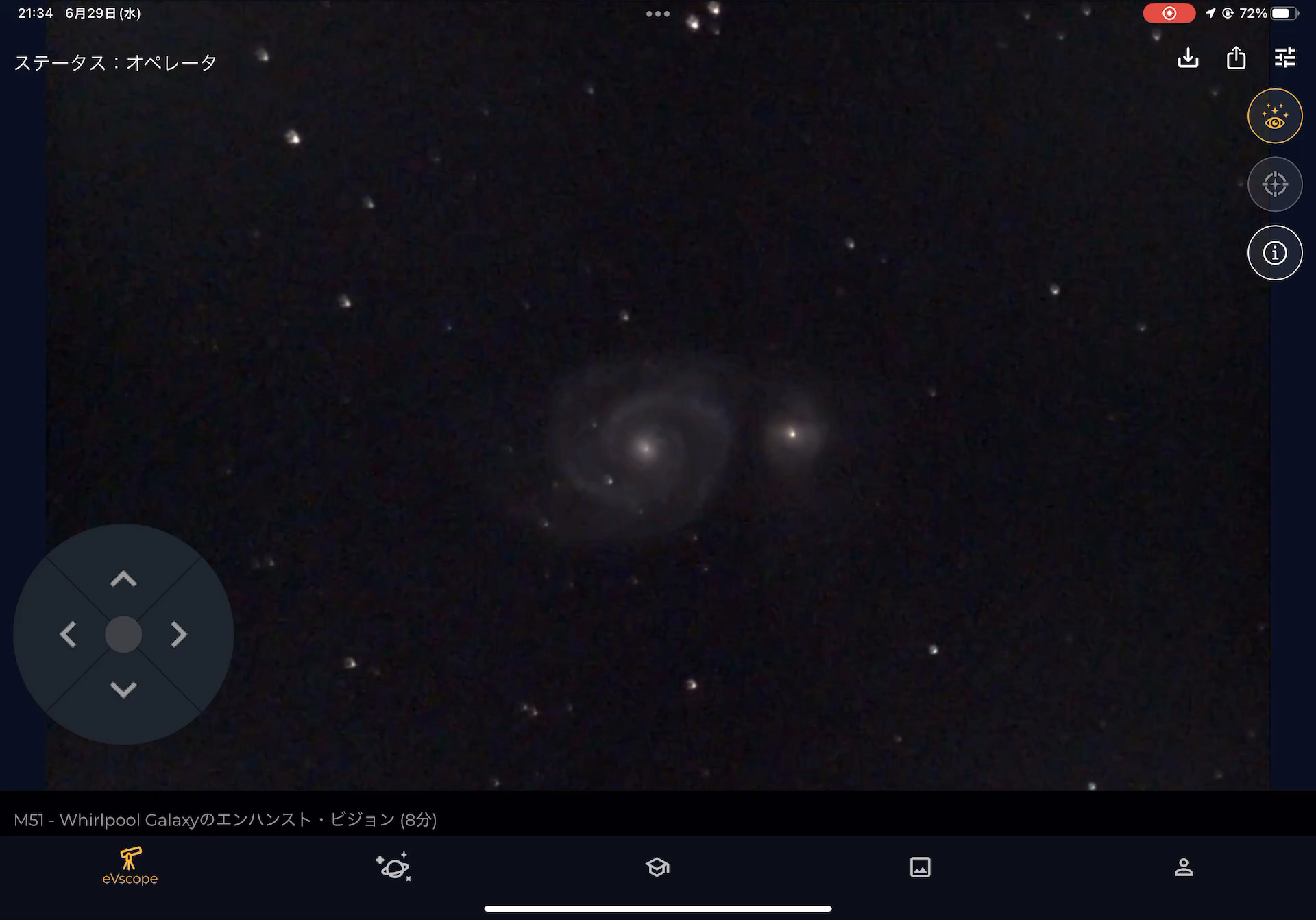 これだけ簡単な操作で銀河や星雲などを次々に観測できるのは本当に驚きの体験です。ついつい時間を忘れて数時間楽しんでしまいました。