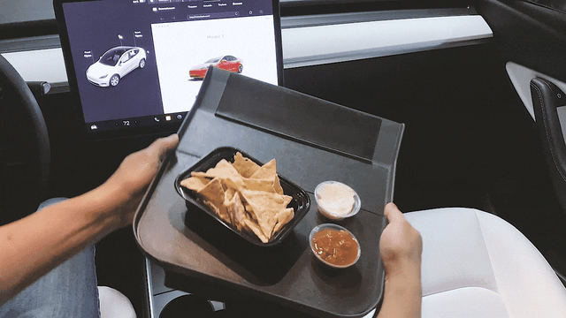「Alset Tray」は、電気自動車のテスラ専用に設計された大型トレイ。スマホや小物など、停車時間中にさっと使いたいものなどを置いておくのにピッタリだ。