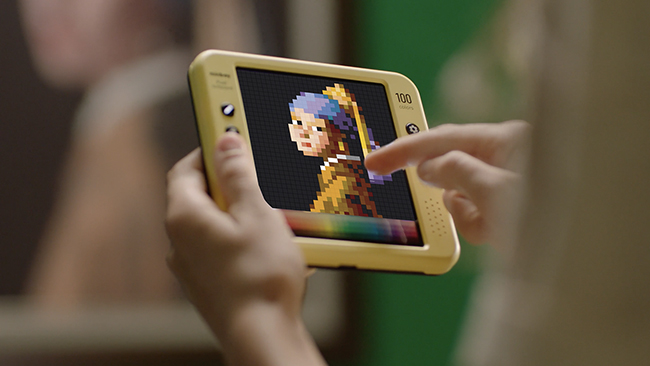 「minbay Pixel Artboard」は、拡大・縮小、色塗り、ラインの切り替えなどを、タッチスクリーンで直感的に操作可能。子供にも使いやすい。
