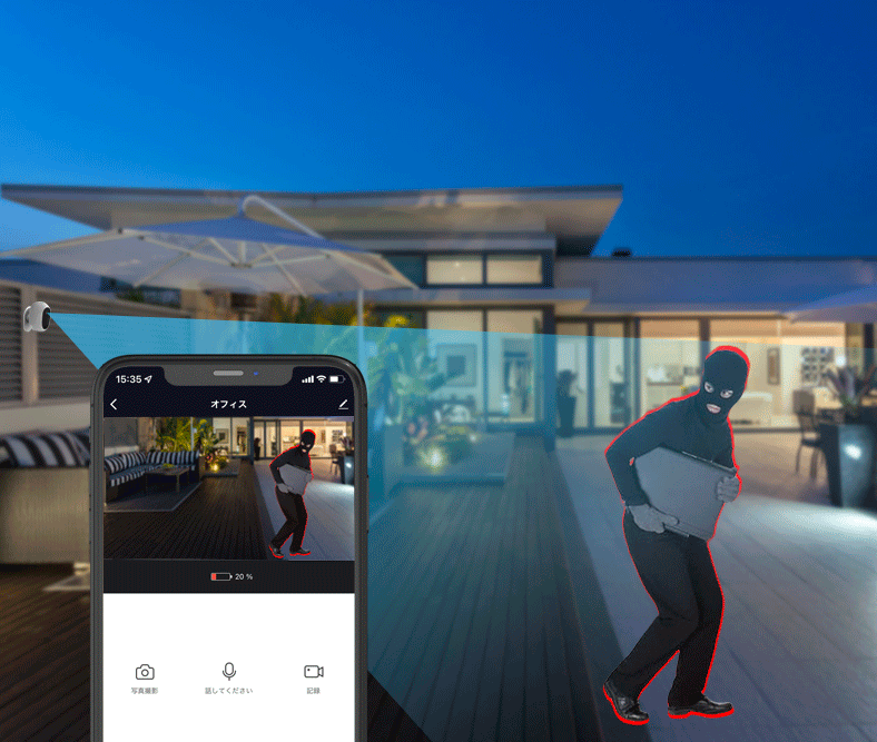 また、動体探知機能がついており、カメラを横切る人間の動きを感知すると自動的に録画を開始してスマホに通知してくれる。どこにいてもリアルタイムに異常が把握できる頼もしい機能だ。
