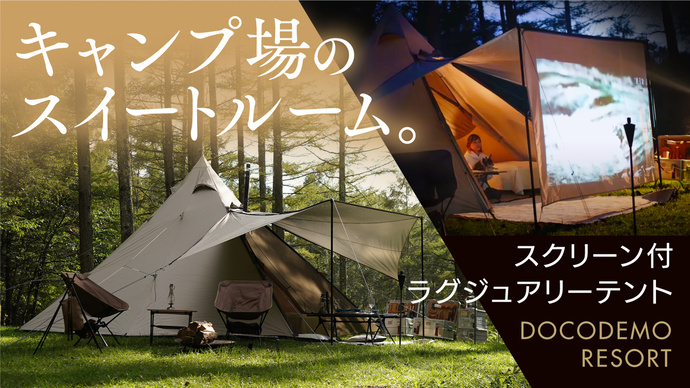 「DOCODEMO RESORT」は、広い空間で贅沢なキャンプが楽しめそうな大型テント。グランピングなども楽しめそうだ。