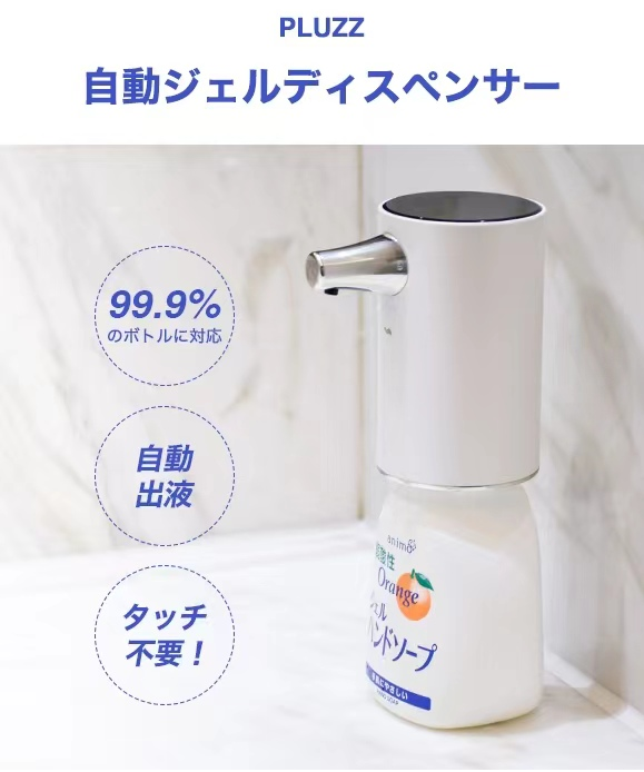 • 高感度センサー搭載で自動出液!タッチ不要な万能ジェルディスペンサー「PLUZZ」 通用アダプターによる高い汎用性|90日長時間稼働|6段階調節|防水|USB充電 | Gloture