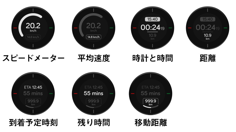 「Beeline Velo 2」は、シンプルなディスプレイで視認性が高いのが魅力だ。走行しながらでも画面をタップするだけで、速度、時間、距離、到着時刻、移動距離などを見やすく表示する。LEDバックライト付きなので、夜道でも使えそうだ。