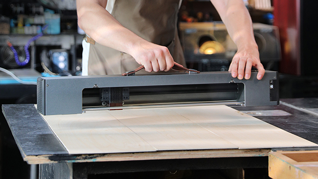 木、コルク、プラスチック、皮など数百種類の素材に対応。組み立て要らずのシンプルな設計で、パソコンやスマホから簡単に操作できる上、タッチスクリーンも搭載し、初心者にも使いやすい。