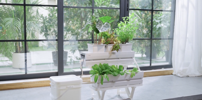 「LetPot」は、16Lのタンクを搭載し、プランターの内を水が自動で循環する。専用アプリから各植物に最適な給水モードを選択すると、約30日間プランターごとに最適な水の量に調整し、植物は最適な水分状態ですくすく健康的に育つという。