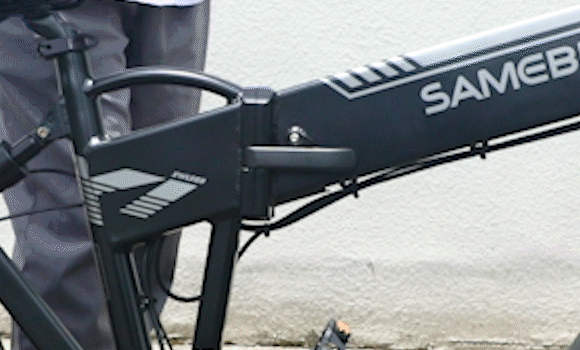 時速24kmまで5段階電動アシストが動作する。500Wのモーターで35°の坂道や悪路も軽快に走行できるという。アシスト機能の操作は手元のボタンで簡単に行える。
