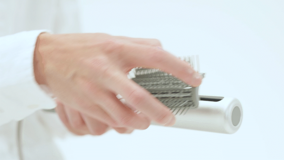 ⾵温調節は⾼温/中温/低温/スタイリング(※温⾵と冷⾵が交互に切り替わる)の4段階。最⾼温度を85℃に設定し、髪のダメージや過乾燥を防止。更に、マイナスイオンを含んだ温⾵で髪と地肌をケア。また、吹出⼝とブラシプレートには遠⾚外線を放射するコーティングが施されている。