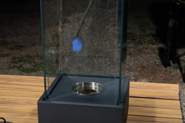 ガラスに囲まれ高い暖房効果があり、室内を効率よく暖められる。ススや煙はほとんど出ないという。