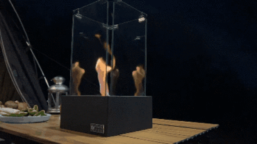 耐熱ガラスの中でゆらぐ炎は、美しい螺旋状だ。