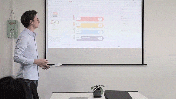 「Smart C」はコードレスだから移動しながらでも操作が可能。PCの前にいなくても上下のスクロール、ページの切り替えなどができるので会議やプレゼンテーションなどビジネスシーンとも相性が良さそうだ。