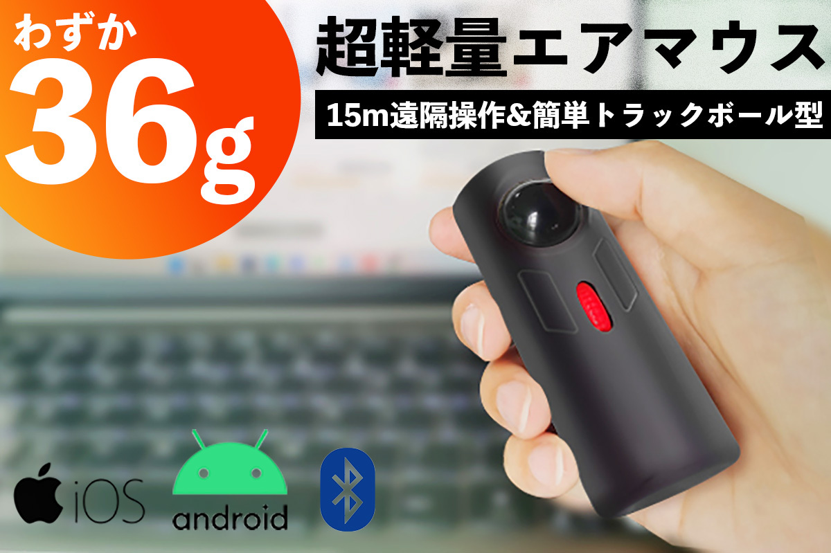 Bluetooth接続で最大15m離れても操作できるトラックボール型エアマウス(空中マウス)「Smart C」。PC・スマホ・タブレット・プロジェクター・TVなど多様なデバイスで使用可能。重さは36gと軽量で持ち運びには困らないだろう。プレゼンや動画鑑賞、撮影など様々なシーンで使える。