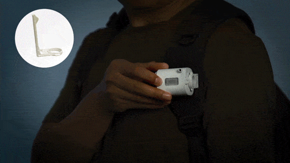 2,000mAhのバッテリーを搭載し、充電はUSB Type-Cで行う。ボタン1つで操作でき、1回押すとモジュールの電源のON/OFF を切り替えられ、2回押すと本体の電源をON/OFFできる。また、長押しで、ストロボライトのON/OFFが可能。