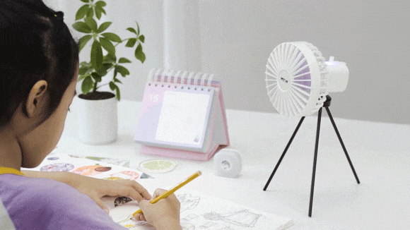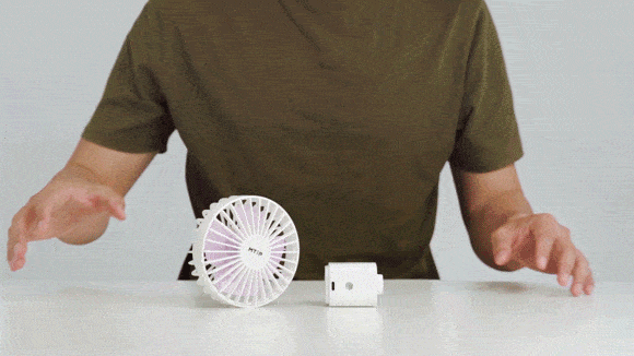 扇風機のモジュールをつければ、暑い日でも涼を取れる。約4時間の連続利用が可能。