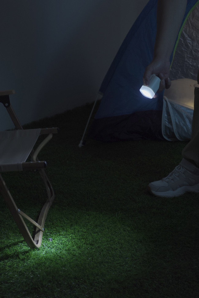 懐中電灯として使うときは、約50m先まで照らせるという。4.5〜11時間利用できるとし、夜間の歩行やキャンプだけでなく、災害時などにも重宝しそう。