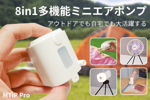 「MTiP Pro」は、手のひらに収まるほど小さいのに、8つの機能が使えるミニエアポンプ。