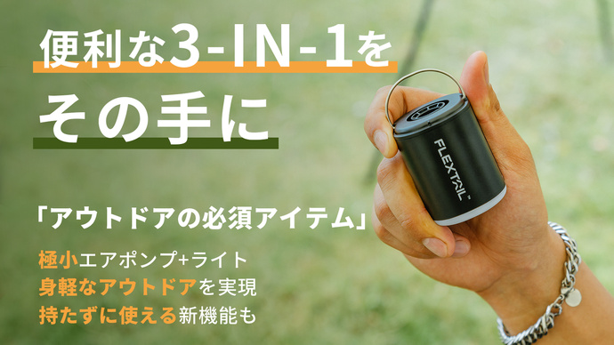 極小エアポンプ+ライト=TINY PUMPシリーズは「X」がMakuake、「2X」が米Kickstarterにおいて、計2万2674個も応援購入していただきました。「T...