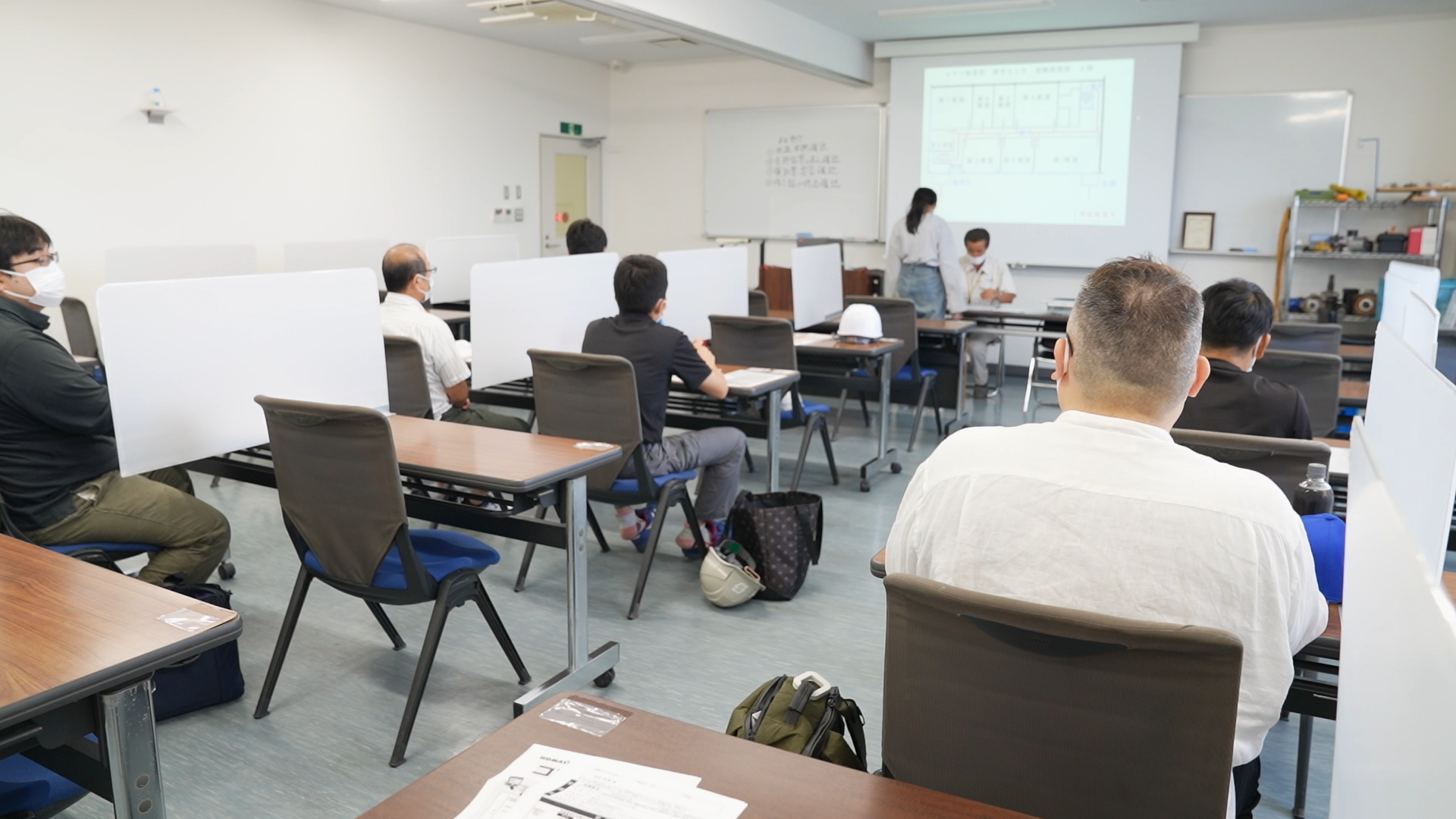 講義の内容は「走行に関する装置の構造及び取り扱いに関する知識」や「作業に関する装置の構造及び取り扱いに関する知識」、工事に関する法律関係などが中心。