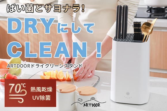 調理に使う包丁や、口に入れる箸やフォークなどは、清潔に扱いたい。そこで登場したのが、熱風乾燥・UV照射機能を備えた収納スタンド「ARTDOORドライクリーンスタンド」。