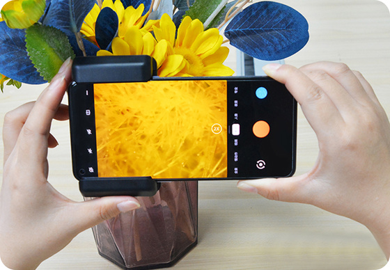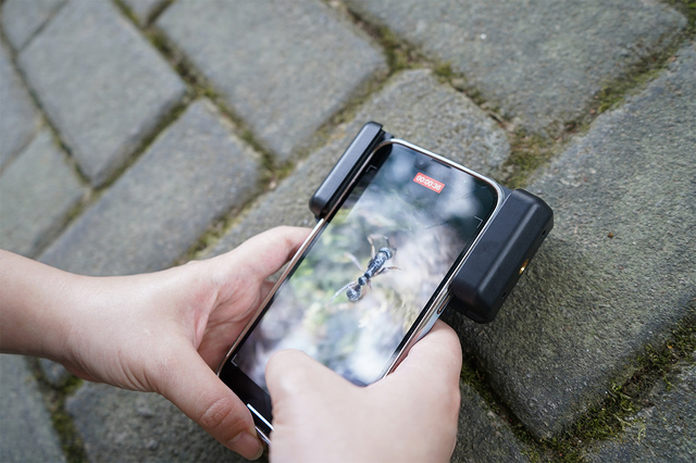 ただ一般的な高倍率顕微鏡の弱点として挙げられるのが、屈折光だ。倍率が高い顕微鏡は屈折光が目に入りやすく、目への負担がどうしても大きくなってしまう。しかし「MS009」はスマホ用に設計しているため、屈折光を和らげ、目への負担を気にすることなく自由に観察できるという。