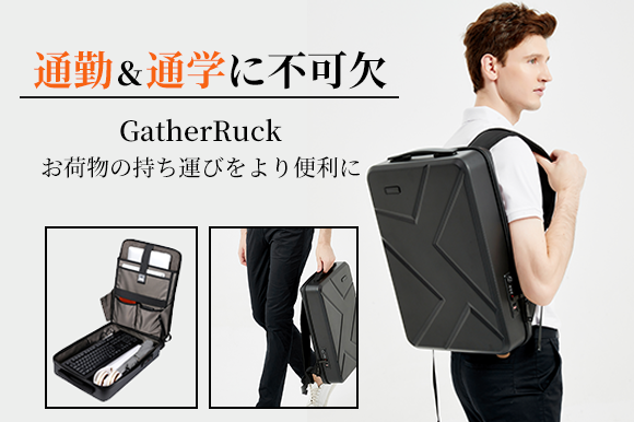 「GatherRuck」は、階層式設計で収納力を高めたリュック。PCやタブレット、その周辺デバイスなどを仕分けながら収納できるようになっており、通勤や出張に重宝しそうだ。