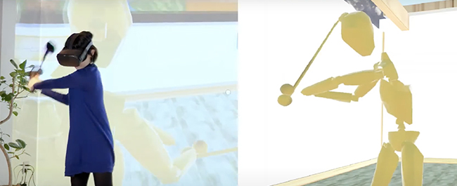 「NUP」は、体の動きそのものをデータ化してVR上に可視化。ユーザーはVRの動きをなぞるように体を動かすだけで、動きの感覚をスムーズに掴める。
