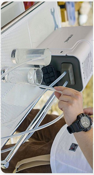 「ITEHIL」は3段階で水をろ過する。水を取り込むと2層の複合フィルターでろ過され、砂やほこりなどの粒子は廃水出口から排出される。さらにバクテリアなどの有害物質はRO膜(逆浸透膜)でろ過される。