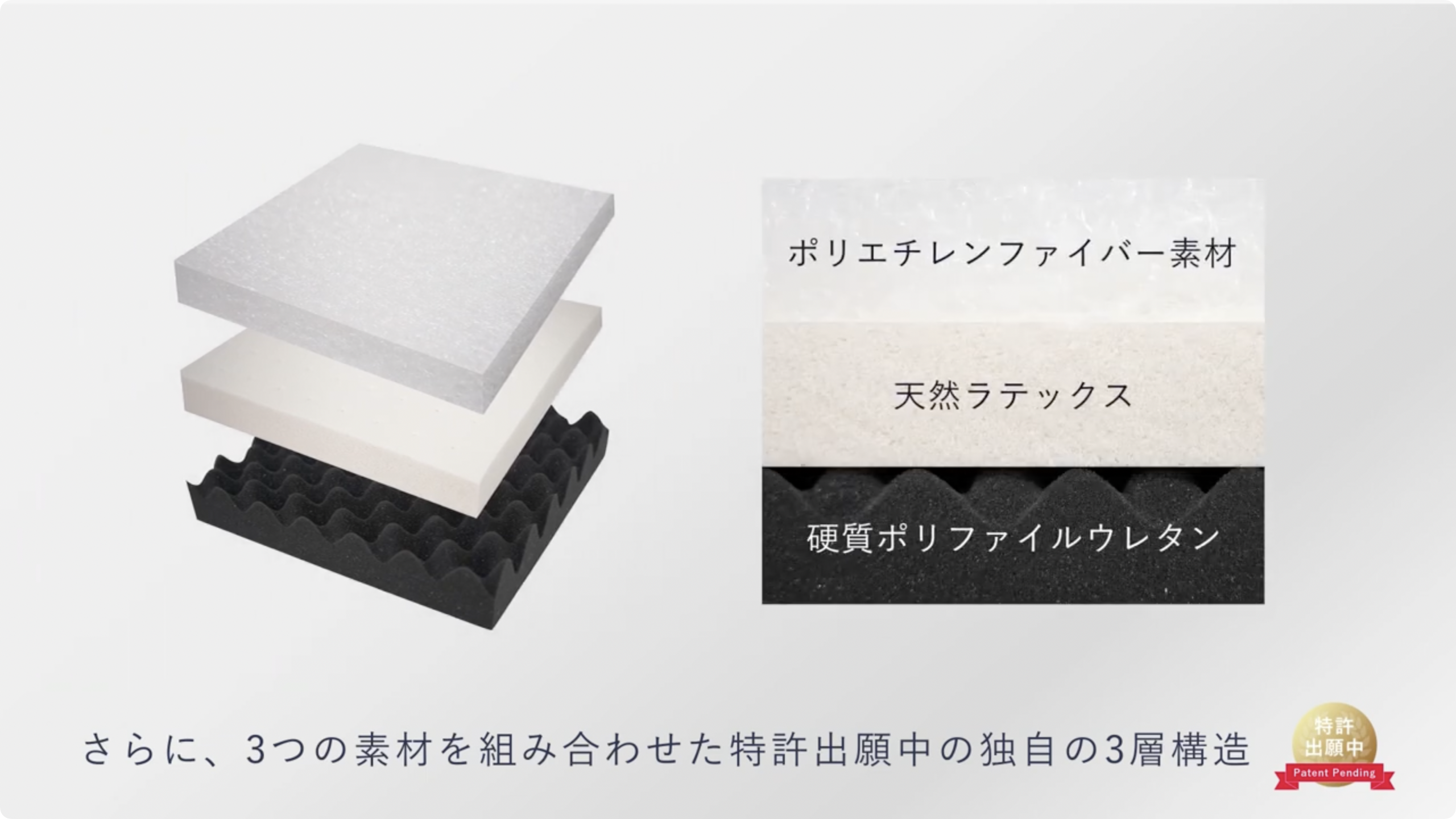 組み合わせている素材は、「ポリエチレンファイバー」と「硬質ポリファイルウレタン」。