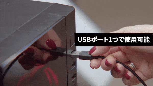 使い方は、本体をディスプレイに固定して、USBケーブルでパソコンにつなぐだけ。