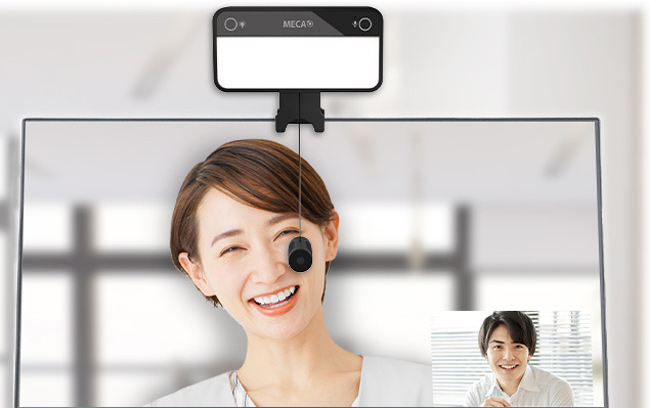 「MECA WEBCAM」は、PC画面の中央に小型カメラをくっつけることで、目線を合わせてオンライン通話ができるというウェブカメラだ。