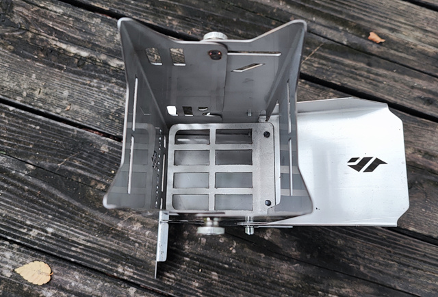燃えた後の灰が下部に落ちる仕組みになっている。灰を燃焼スペースから落下させることで、燃料の火が消えにくい設計。