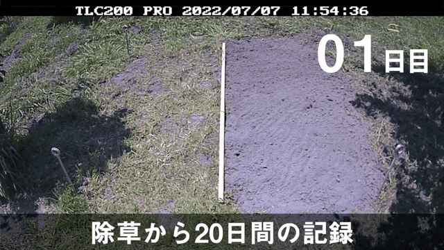 カマ(左)と『除草バイブレーターミニ』(右)で草抜きをした後の20日間の記録を見ると、その違いは明らかだ。