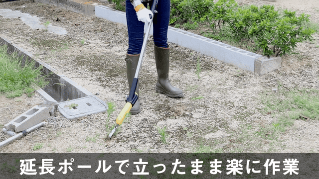 毎分2,300回の高速振動により、雑草を震わせて根っこごと抜くので、一度抜いた雑草は長期間生えづらいという。