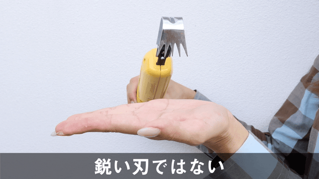 先端のブレードは根っこを引っ掛けられる形状だが、刃物ではない。その為、けがの心配も軽減される。