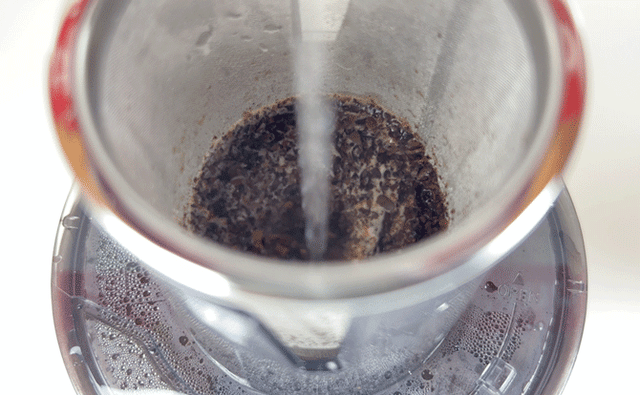 きめの細かいステンレスフィルターを採用。洗って使えるからエコで経済的だ。コーヒーだけでなく、お茶や紅茶も楽しめる。